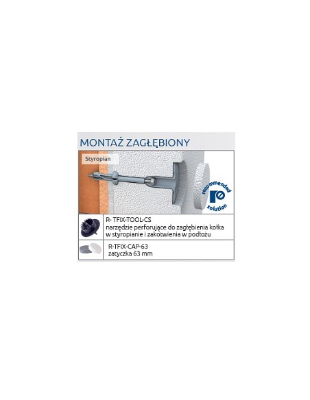Montážní hrot RawlPlug R-TFIX-TOOL-CS je plastový hrot pro montáž zapuštěné záslepky R-TFIX-8SX, která ji současně namontuje a vyfrézuje otvor pro zátku. Na výběr jsou tři typy: