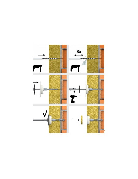 9. Utahujte hmoždinkový šroub, dokud nedosáhnete příslušné hloubky ukotvení (deska by měla být na jedné ploše s vrstvou tepelné izolace).