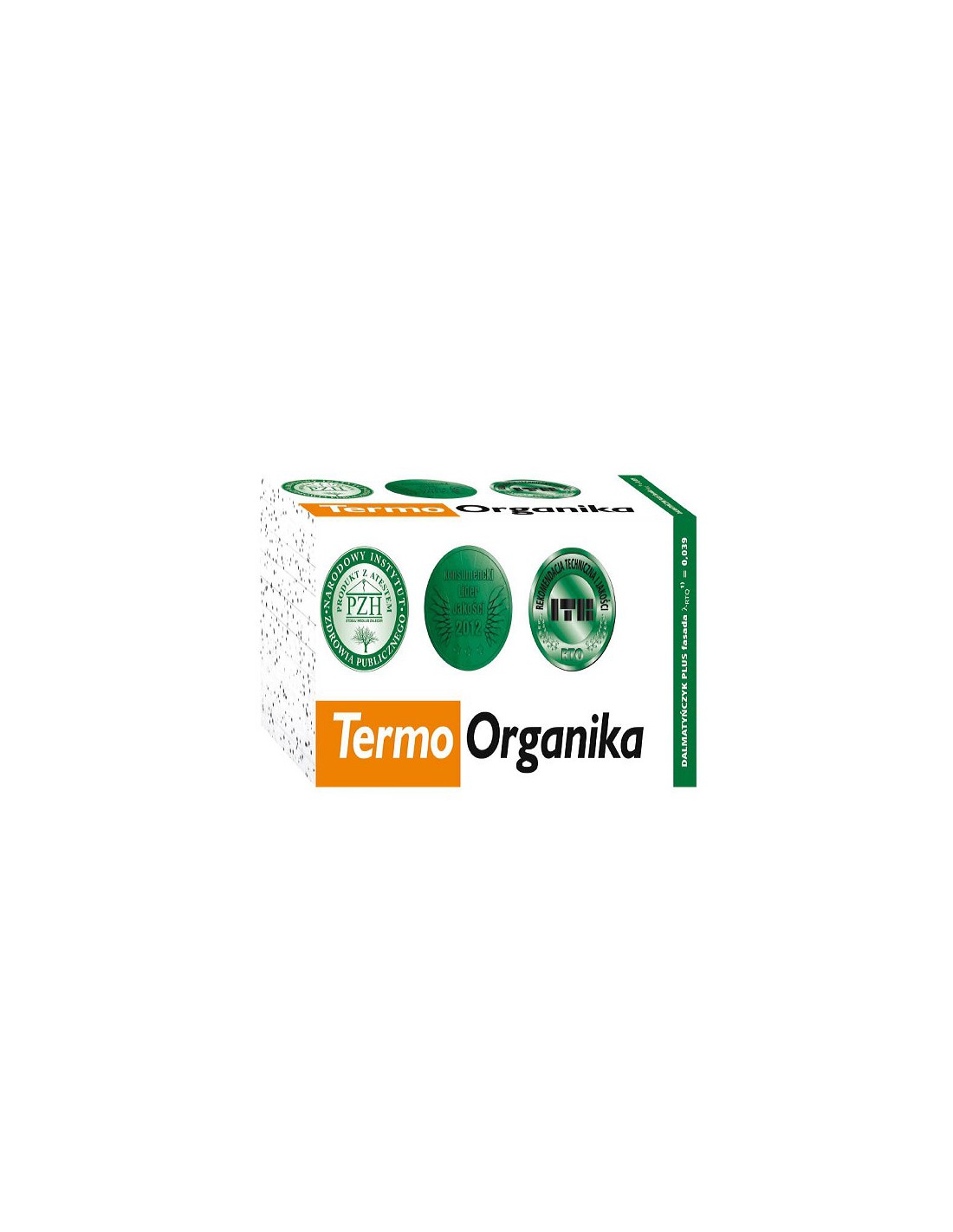 Termo Organika DALMATYŃCZYK PLUS fasádní polystyren je bílý polystyren s tečkami pro tepelnou izolaci stěn s koeficientem λ = 0,042 W/(m*K).