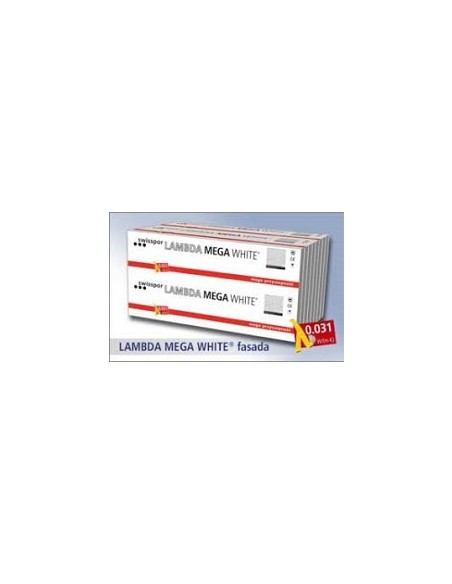 Fasáda Swisspor LAMBDA MEGA WHITE ® je polystyren, který tu ještě nebyl. Výrobek kombinuje výhody šedého a bílého polystyrenu, vyráběného technologií individuálního vstřikování do formy (kameniva). Na přední straně výrobku jsou navíc vyznačena místa pro hmoždinky a na druhé straně místa pro nanášení lepidla . Celá plocha desek na lepicí straně je zvlněná , což zvětšuje plochu lepení a tím zvyšuje přilnavost desky ke stěně.
