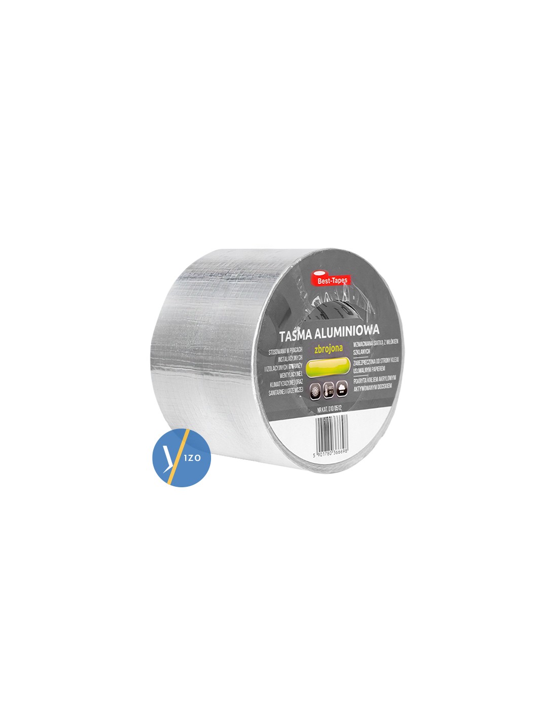Hliníková vyztužená páska 96 mm vyztužená síťovinou ze skelných vláken 5x5 mm je jednostranná páska používaná k parotěsnému lepení a utěsnění přesahů a proražení v metalizovaných a hliníkových parotěsných a tepelně izolačních fóliích . Vhodné také pro montážní a izolační práce v následujících odvětvích: ventilace, klimatizace a vytápění. Používá se také jako izolátor pro parní potrubí. Páska v pevném 1palcovém plastovém pouzdře. Oproti standardní metalizované pásce má páska lepší přilnavost, což umožňuje její použití ve ztížených podmínkách (nízká teplota, vlhkost). Má také větší mechanickou pevnost.