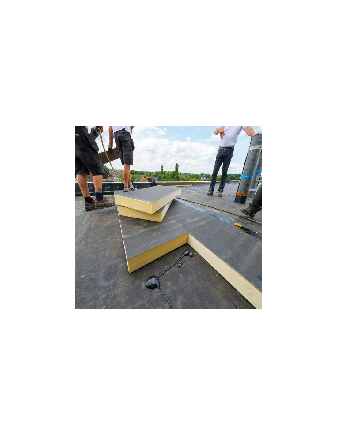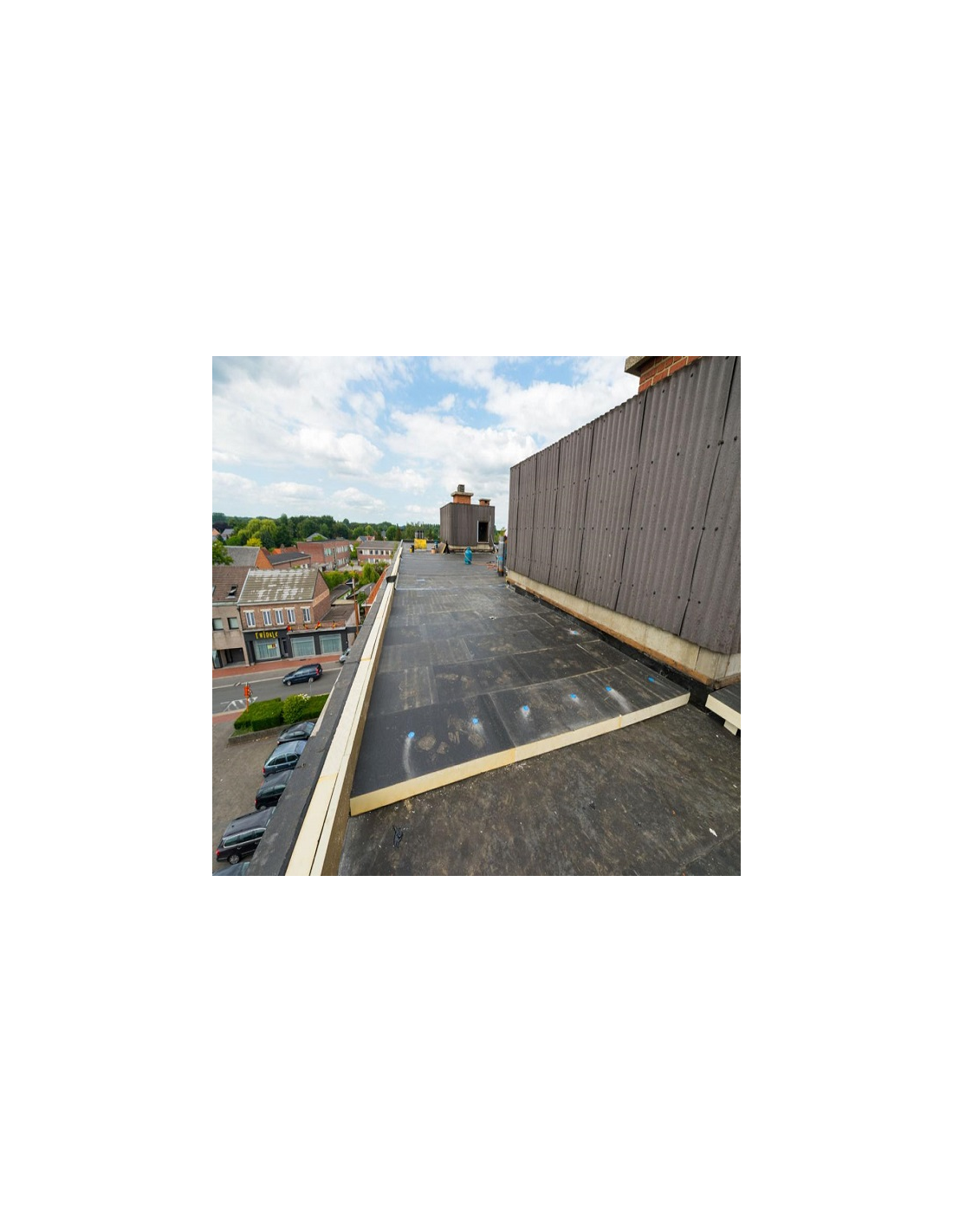 Polyuretanová deska Recticel EUROTHANE Bi-4 typ 80B tloušťky 45 - 60 mm je tvrdá , spádová, polyisokyanurátová tepelně izolační deska s oboustranným bitumenovaným sklovláknitým obkladem - bez sypání, pro izolaci plochých střech a teras . Označeno značkou kvality KEYMARK .
