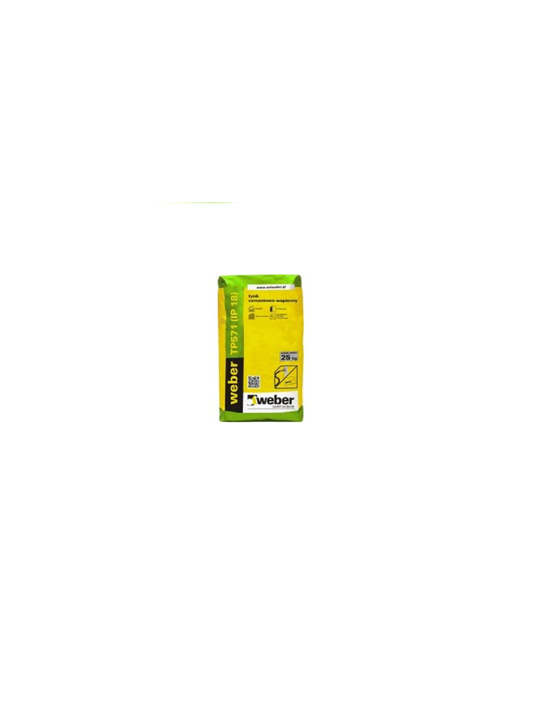 Weber TP571 (IP18) omítka je cementovo-vápenná základní omítka pro následné dokončovací vrstvy v obytných budovách i v komerčních, průmyslových a veřejných zařízeních. Pro ruční i strojní aplikaci . Vápenocementová omítka Weber TD571 má tyto parametry: