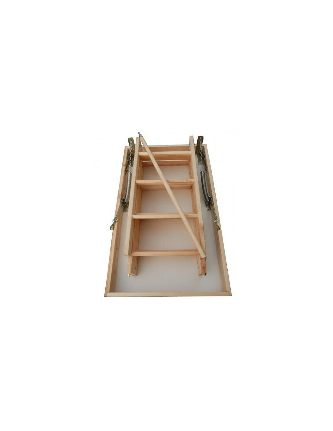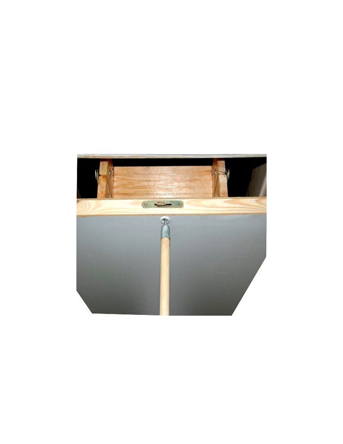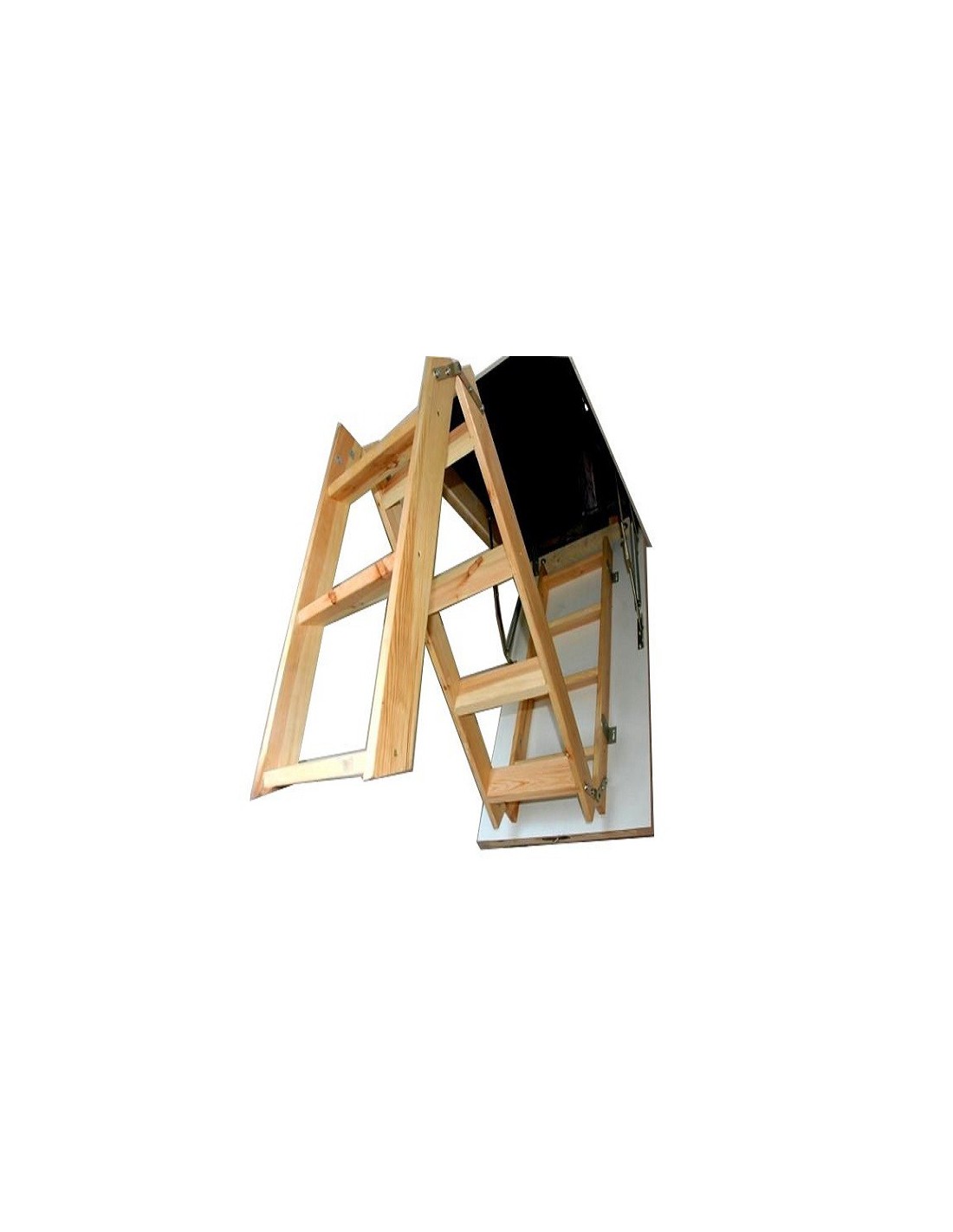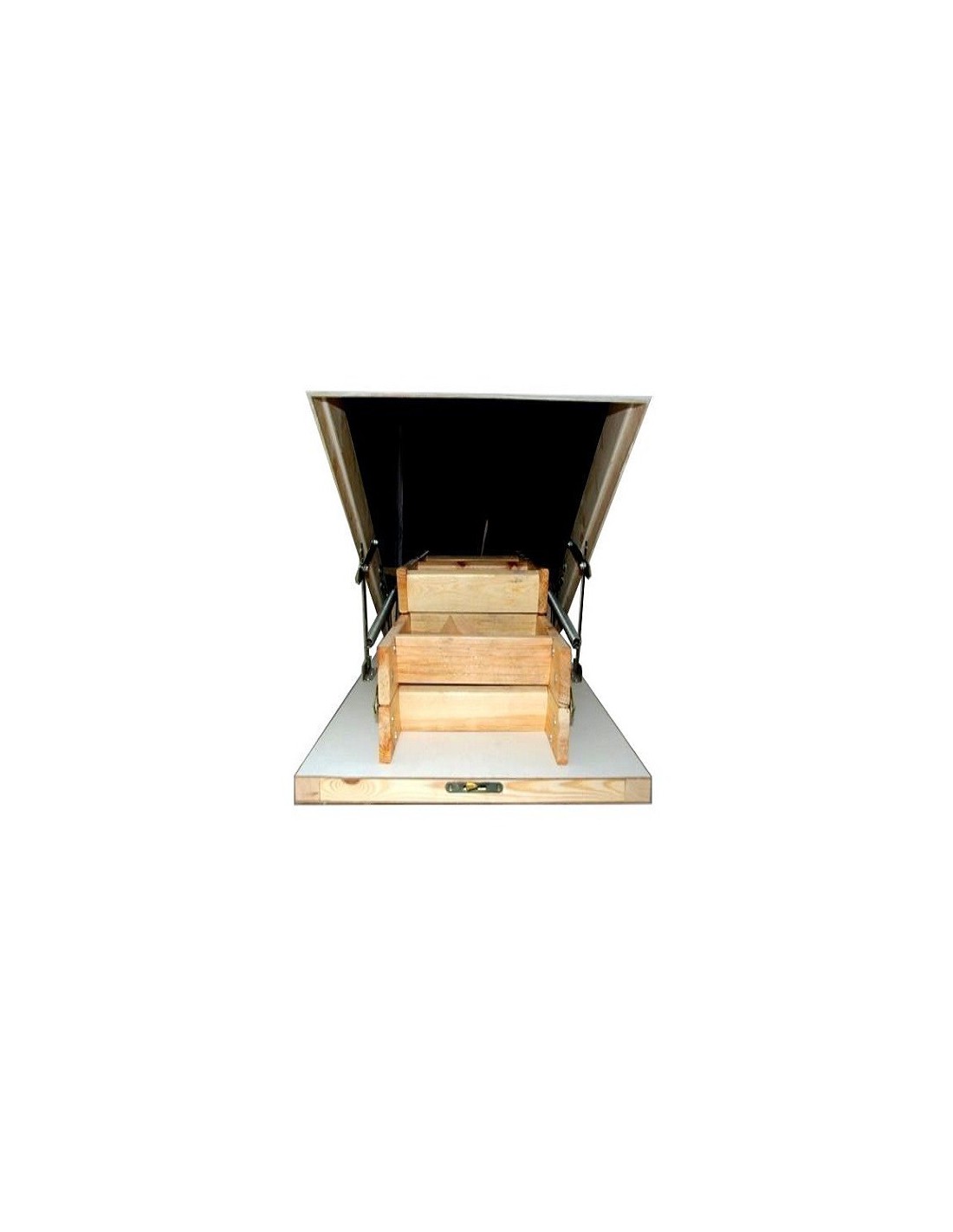 • Poklop - tepelně izolační, tloušťka 36 mm, oboustranně zakončený bílou HDF deskou. Na vnější straně klapky nejsou vidět žádné montážní prvky. Systém otevíracího mechanismu uzamkne poklop v plně otevřené poloze, čímž zabrání jeho samozavření při skládání a rozkládání žebříku.