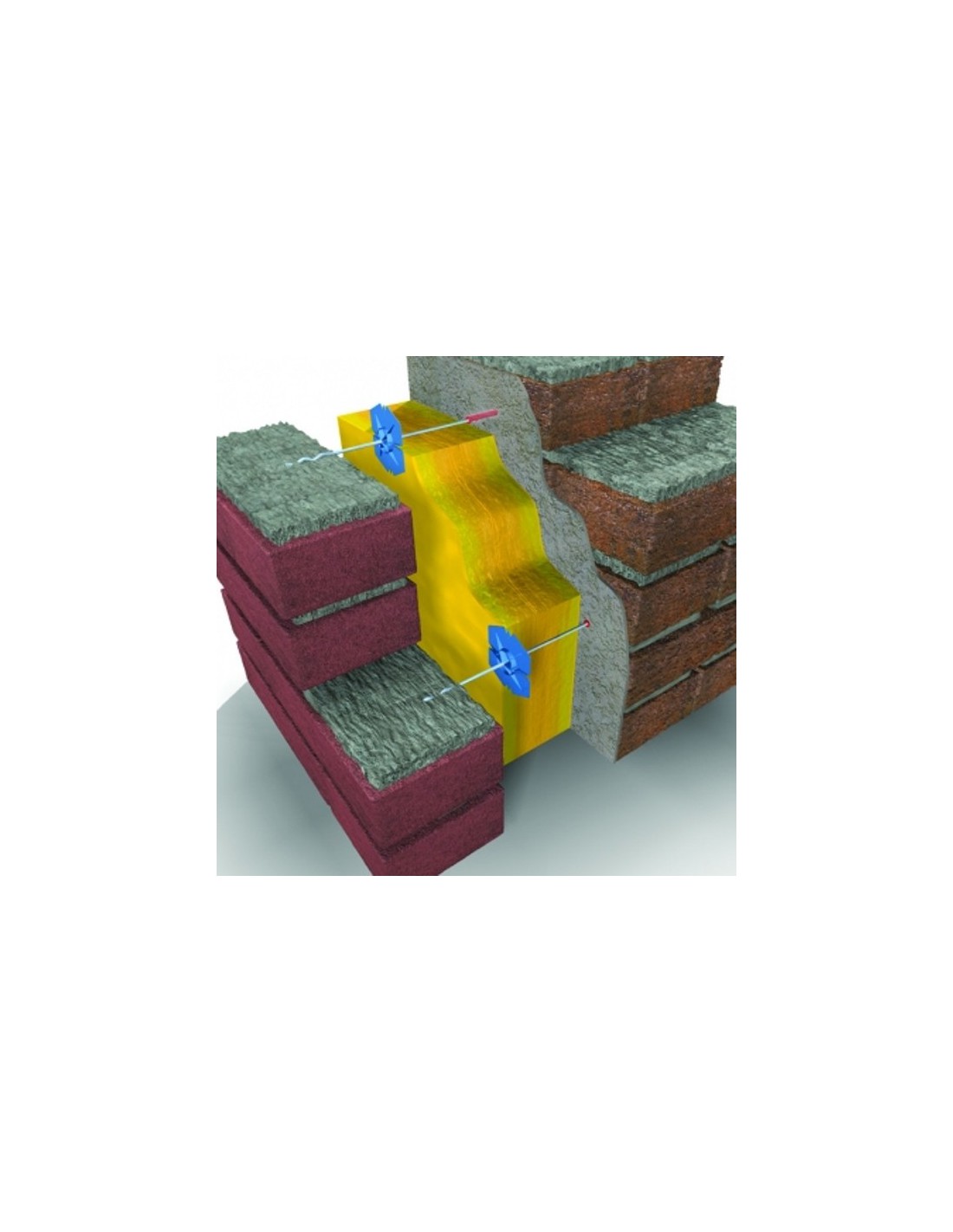 Kotva KWB-4/275 bude vhodná pro izolaci o tloušťce 100 mm . Výpočet: 250 mm - 60 mm (kotvení do zdi) - 40 mm (větrací mezera / vzdálenost mezi stěnami) - 50 mm (zapuštění do třívrstvé stěny).